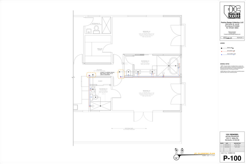 Single family residence remodel including an extension of one side of the home, two bathroom remodels, and modified exterior windows/doors.